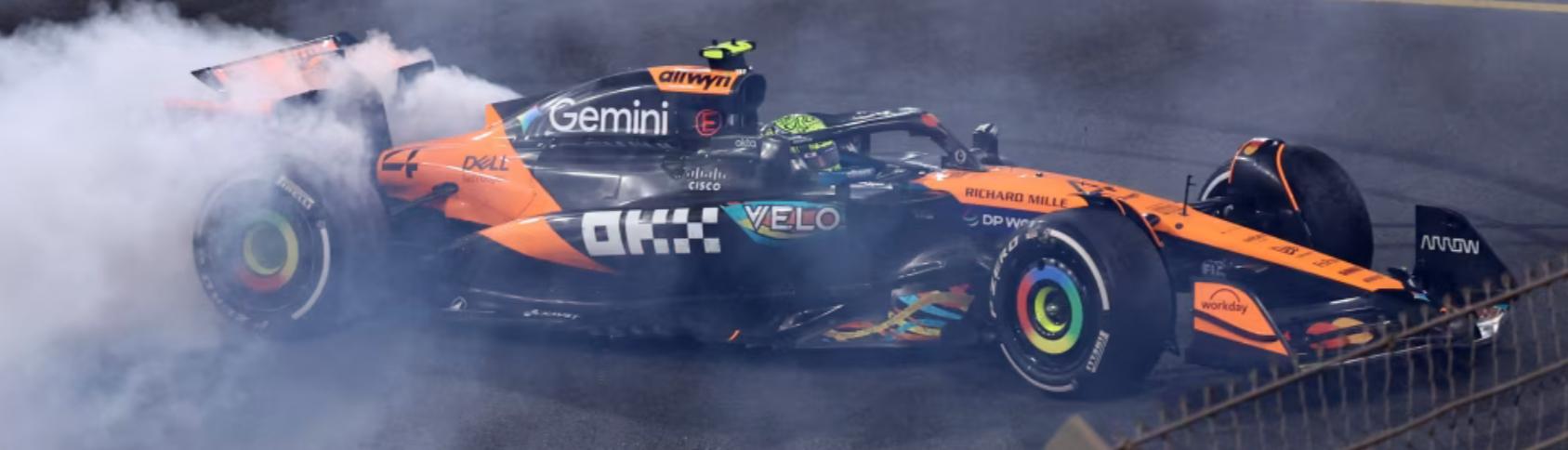 К психологу ему сходить надо, и отдохнуть - в клубе с барышней своей оторваться, потом в отеле с ней же. А через месяц только о гонках думать, а то вон в интервью дичь какую-то уже плетёт: "Что касается ошибки, то я просто не хотел, чтобы меня вынесли в первом повороте, поэтому я оставил соперникам побольше места, но немного не рассчитал траекторию на выходе из поворота», – рассказал Норрис." На старте по привычке поехал щемить Оскара, хотя Перес ему по факту траекторию освободил отжимая Хэмилтона и того же Оскара - едь прямо и будет тебе счастье. В поворот зашёл по траектории Переса, а вышел зачем-то шире, хотя никто не мешал. Там внутри поворота был только Оскар и между ними было расстояние в ширину машины.