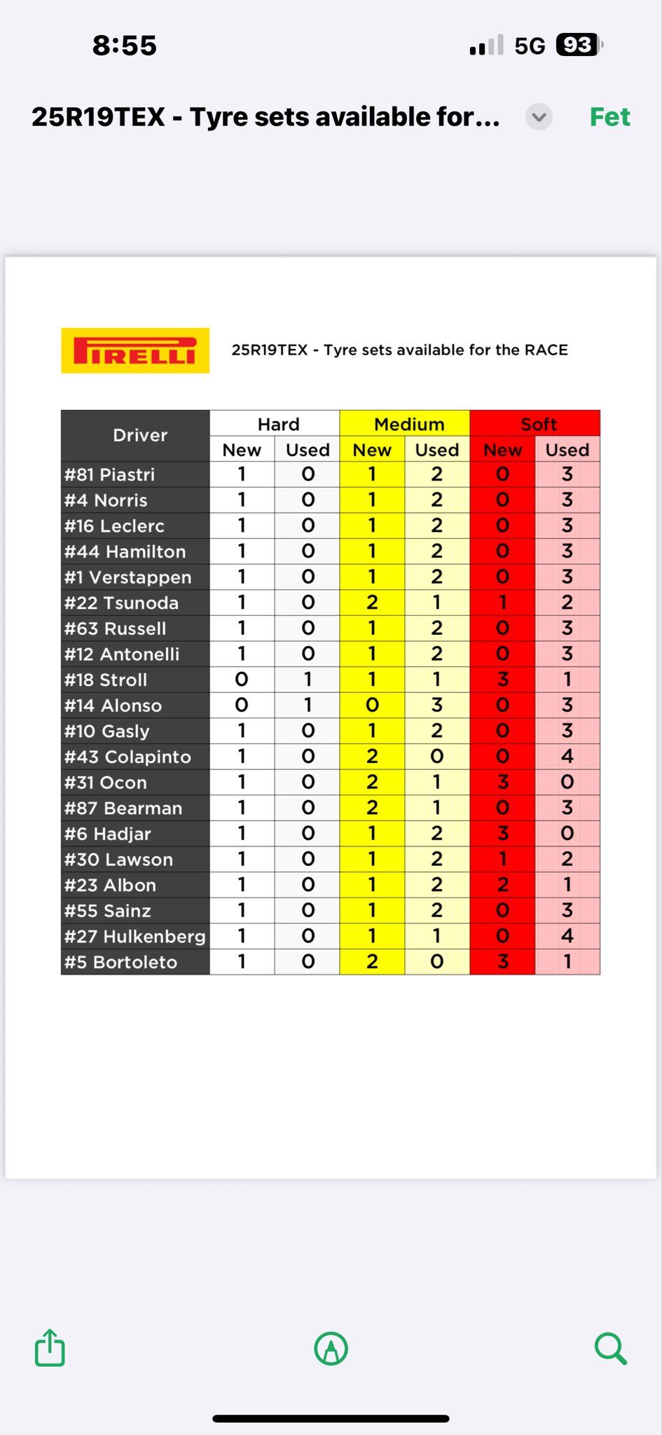Крайне жаль, что Пирелли не пишут в этой таблице у использованной резины в скобках сколько кругов она прошла.